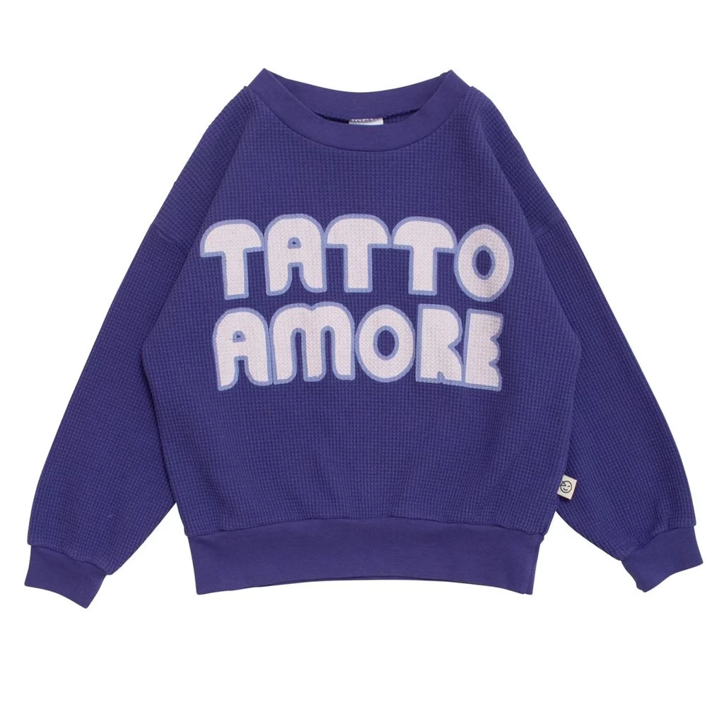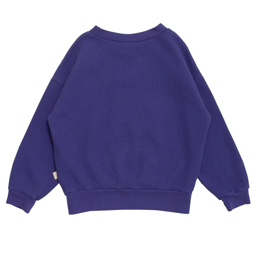 An on-trend and comfortable sweatshirt for everyday life. Blue Tatto sweatshirt by Wynken. The sweatshirt has a relaxed fit. It has a waffle weave design, a print at the front and ribbed cuffs.