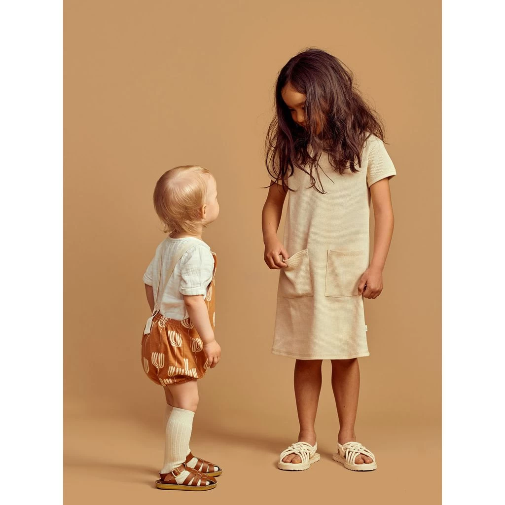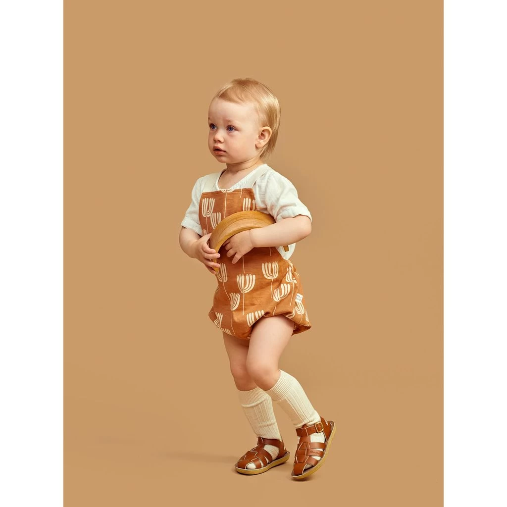 Feel-good brand Mainio use only ethically-sourced materials when it comes to their playful childrenswear designs. Combining comfort with contemporary style, this romper has been crafted from organic cotton and features a bold tulip print with contrasting cream pinafore straps and elastication around the legs to allow your little one extra room to move around in.