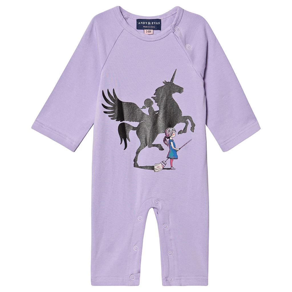 Add a magical theme to casual outfits this season with this lilac unicorn onesie from Andy & Evan. The cotton design includes snap buttons at the front and between the legs for easy changing and a print to one side. Pair with booties from the collection for cooler weather.
