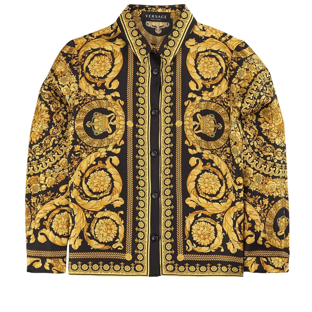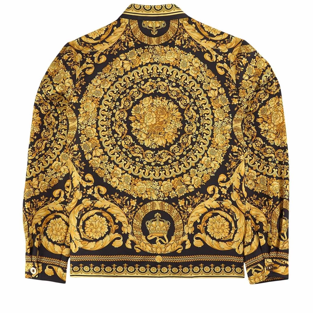 Black Baroque Silk shirt by Versace. The shirt has a regular fit. It has a classic collar and a button closure at the front.
