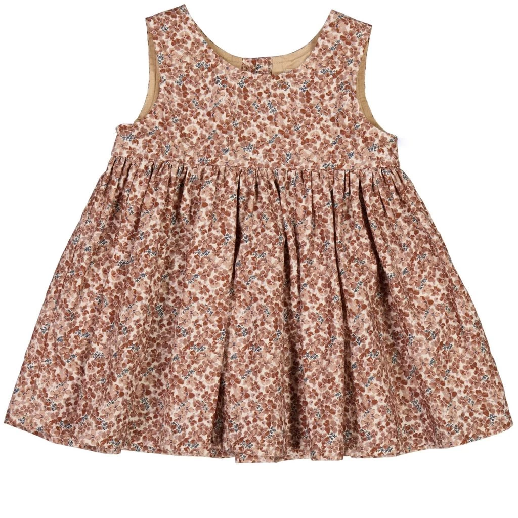Dress your little baby extra nicely. Beige baby dress by Wheat. The baby dress has a floral pattern. It has a gathered waist.