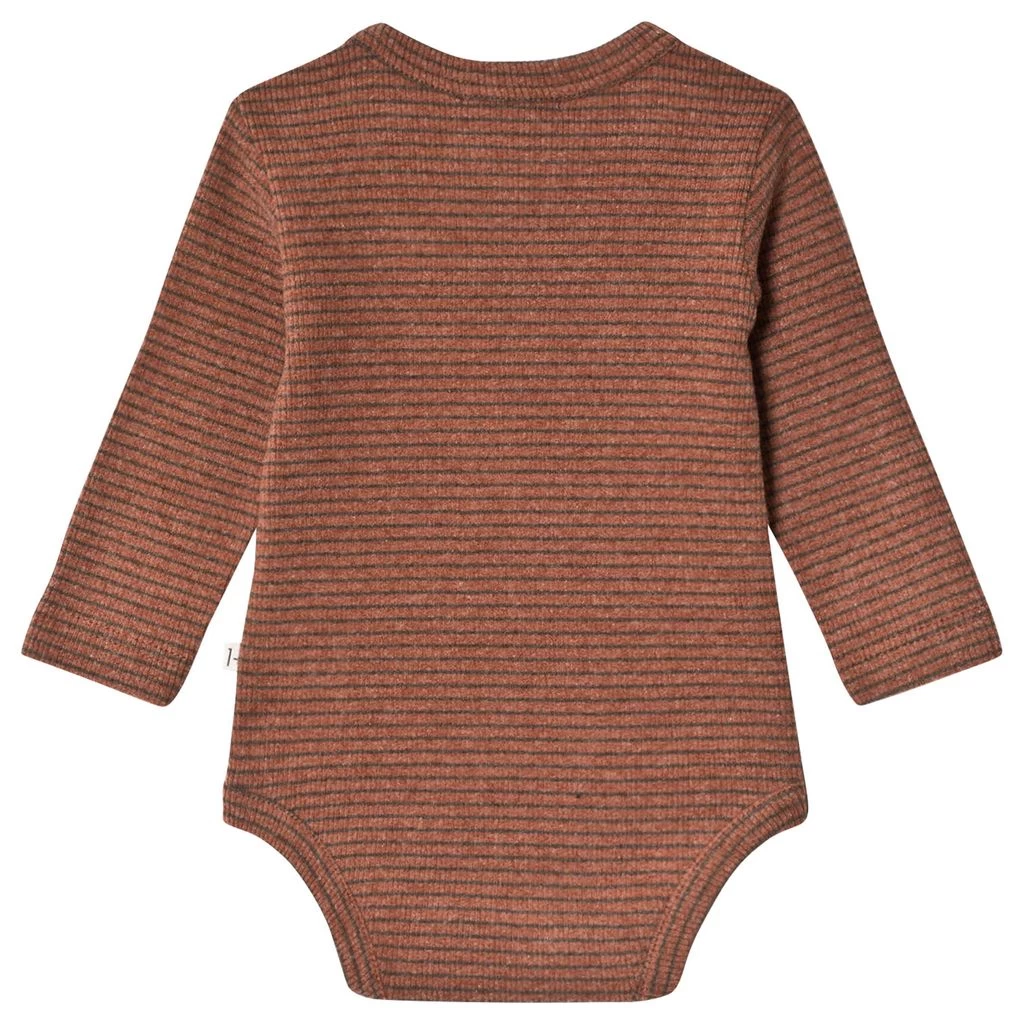 Brown Whistler baby body by 1+ In The Family. The baby body has button closures at the shoulders. It has a snap button closure between the legs.