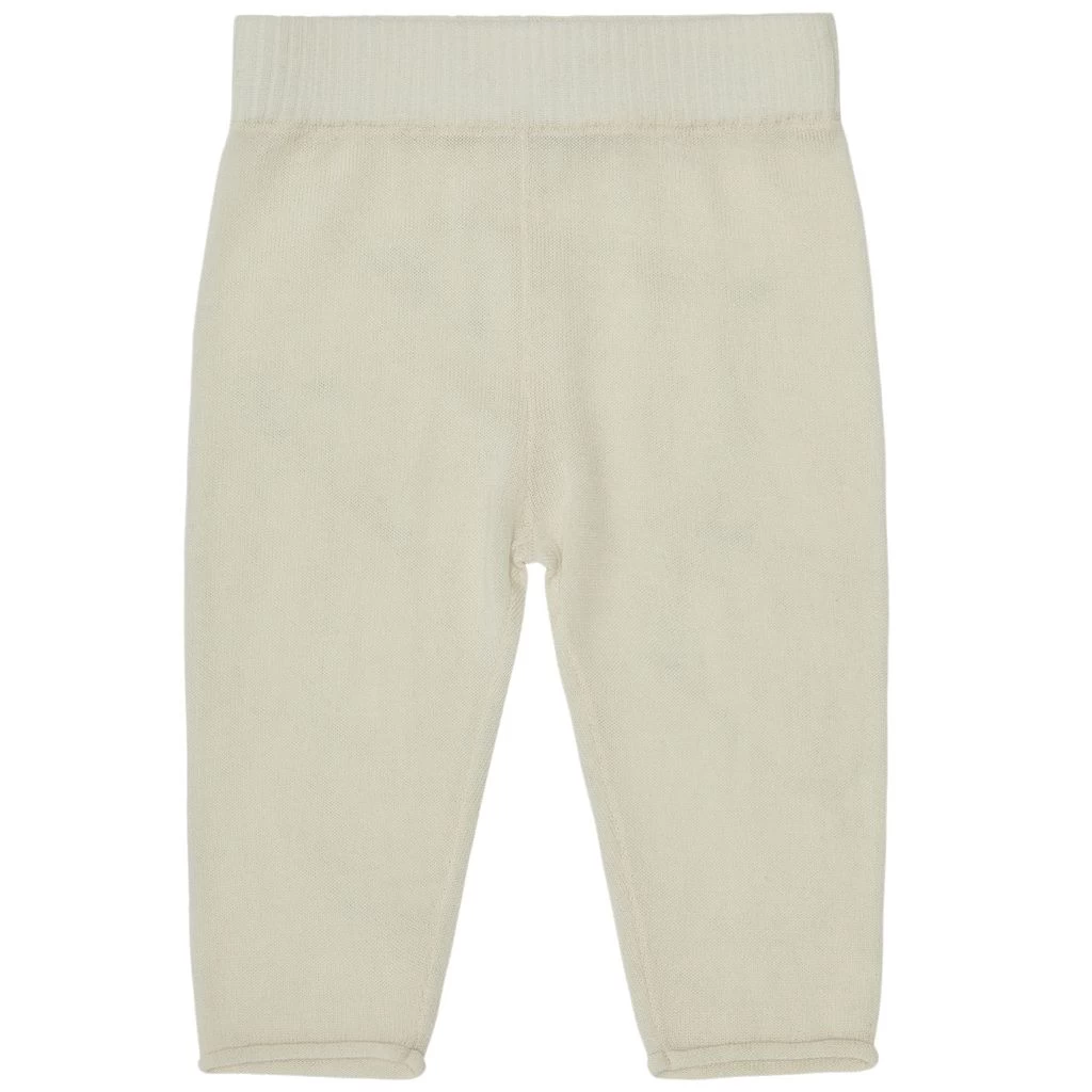 Wool brings you warmth and comfort. Cream trousers by FUB. The trousers have a knitted design. They have an elasticated waist.