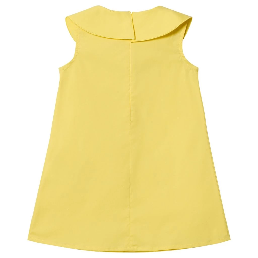 Ignite their imaginations with charming prints and vibrant colours through this Yellow Embroidered Picture Collar Dress from popular Italian brand Vivetta. Realised in stretchy cotton for a lightweight and breathable finish which is perfect for warmer days. Fitted with dog, cloud and rainbow embroidery on the collar for a look that will impress at any family event. Fitted with a hidden zipper up the back for a seamless look and easy changing.