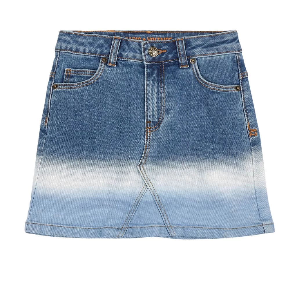 Blue Fade denim skirt by Zadig & Voltaire. The skirt has an adjustable button-elastic waist. It has a zip closure with a button and a 5-pocket design.