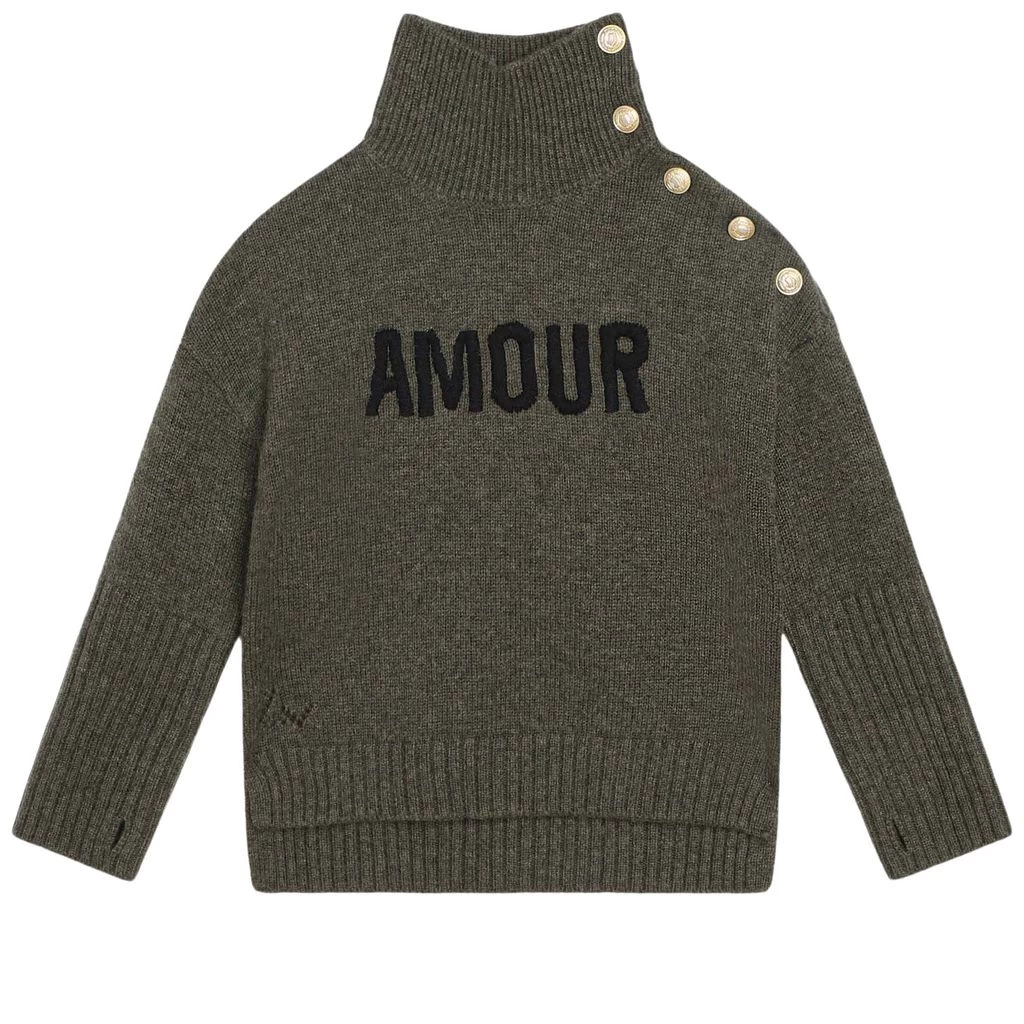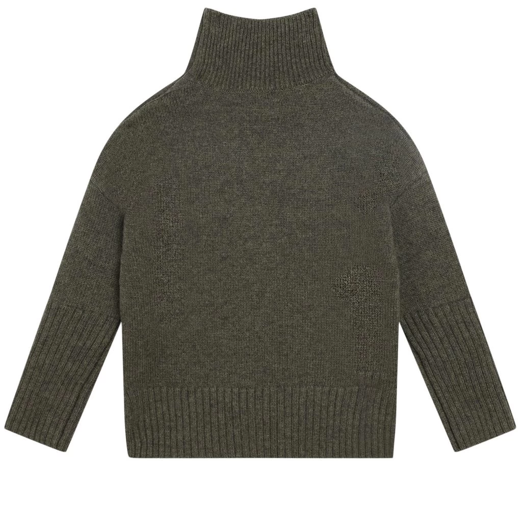 Knitwear is always the right choice. Green knit jumper by Zadig & Voltaire. The jumper has a knitted design. It has a high collar, a button closure at the shoulder and rib-knit cuffs.