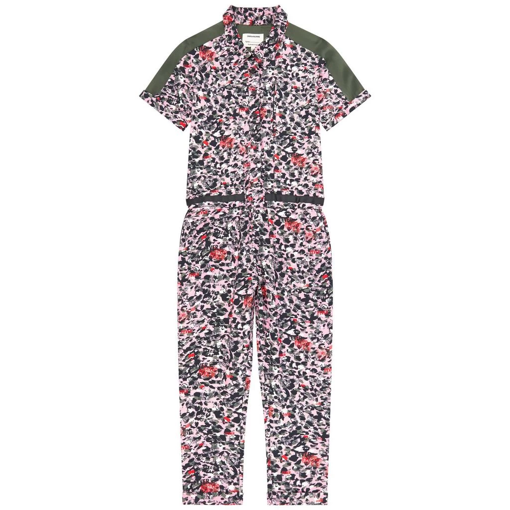 Printed viscose, Shirt collar, Short sleeves, Slant pockets, Zipper on the pocket, Button strap on the chest, Elastic waistband, Fancy print, Fancy print, Mini me item